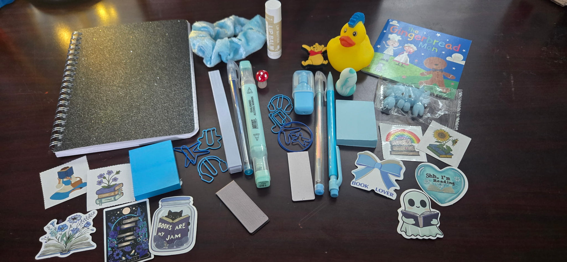 Candles, teas/cocoa, bookmarks, bath soaks, fidgets, trinkets, or cozy treats